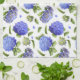 Hydrangea flowers scattered in a beautiful all-over print painted from flowers grown in the artist's own garden.