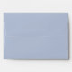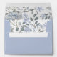 A pretty and elegant dusty blue wedding invitation envelope featuring a watercolor floral pattern background of blue hydrangeas and leaves inside.