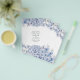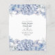 Blue hydrangeas wedding invitation card. Featured are dahlias, chrysanthemum and roses. Please note that this budget invitation is on flyer paper and it is very thin. Envelopes are not included. For thicker invitations with envelopes included and matching products on the same theme please see the collection below.