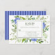 This charming and elegant RSVP card with beautiful, wispy, multi-hued blue hydrangeas and stunning green foliage and coordinating blue striped back is perfect for enclosing with your invitations. Your guests will find it easy to respond to your wedding. It's an excellent choice for any spring or summer bride. You can easily make it your own by selecting Personalize this template and typing in your response deadline. In seconds you will see your unique and stunning RSVP cards!