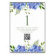 This sign is elegant and chic with flowing natural greenery and multi-hued blue hydrangeas. The font is modern and crisp making it easy for your guests to see the table numbers at your reception. It has a request for photo sharing to your wedding website by using your qr code. Guests will love sharing their beautiful photos with you. To create your table number signs simply select Personalize this template and type in your table number, type in your qr code URL, one at a time and add them in your cart. One per table number. Then repeat until you have all your table number cards. It will literally take you seconds to create each one.