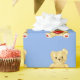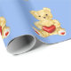 Customizable kids wrapping paper with a cute teddy bears holding a red heart and hypnotizing you with its unblinking gaze, on light blue background. This lovely huggable teddy bears wrapping paper would be great for wrapping gifts for kids or someone you love.