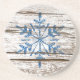 Blue Ice Crystal on Faux Weathered Wood Texture Coaster