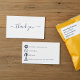 Say thanks and drive repeat orders with this clean thank you enclosure card featuring elegant script and bold blue contact icons. Add a QR code to send customers to a website, reviews, socials, or a special offer, and include a next purchase discount to encourage return visits. The tidy layout is easy to scan at a glance perfect for small businesses and Etsy shops to slip into every package. Icon set, colors, and wording can be customized to match brand style.