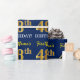 This wrapping paper design features a message like "FirstName’s 48th BIRTHDAY!", with the "48th" having a faux/imitation gold-like color appearance. The name can be customized, and the background is colored blue. It could perhaps be used when wrapping gifts being given for somebody’s forty eighth birthday. [~Z0000181]