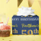 This wrapping paper design features a message like "FirstName’s 59th BIRTHDAY!", with the "59th" having a faux/imitation gold-like color appearance. The name can be customized, and the background is colored blue. It could perhaps be used when wrapping gifts being given for somebody’s fifty ninth birthday. [~Z0000181]