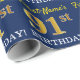 Blue, Imitation Gold Look "91st BIRTHDAY" Wrapping Paper