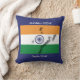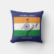 Blue INDIA FLAG Throw Pillow. This is a patriotic INDIAN flag map pillow, showing a COMBINATION of the map outline and the flag of INDIA against a plain background. There are two placeholder texts, reading GOD BLESS INDIA and PSALM 33:12, both of which are CUSTOMIZABLE, so you can replace with your own details, eg. your name. On the reverse the text says INDIA in a tiled pattern. Matching items available in the INDIA Collection by Berean Designs, which would make great gifts for Christmas, Birthdays, National Days and throughout the year. Also available in WHITE.