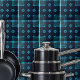 Elegant and stylish decorative tile design featuring a seamless pattern composed of geometric shapes in blue and indigo.