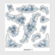 Vinyl sticker sheet with roses and leaves in desaturated indigo blue. Watercolor flowers with line art.