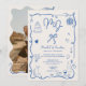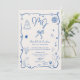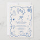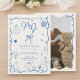 Blue initials handdrawn illustrated photo wedding invitation