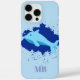 the design shows a blue whale along with a navy blue cloud with sky blue background in the middle and a blue name initials monogram at the bottom. if you purchase any other model except 16 pro max, then use the " edit using design tool" option to adjust the position of the text.
