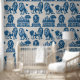 This luxurious wallpaper features a set of lions in blue ink.