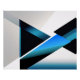 Geometric shapes in blue and black intersect over a white background, creating a dynamic and modern composition. The overlapping generates depth and contrast.