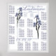 Pretty Blue iris seating chart for weddings or any fine event. Fifteen tables of eight people along with bridal table lists.