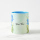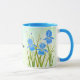 A mug with images of beautiful blue irses. The background, image and text can be customized. Original artwork by W.B.