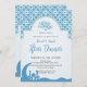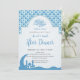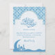 A clean and modern Iftar invitation featuring a serene blue and white color palette. Decorated with traditional Islamic star patterns (Arabesque), a mosque silhouette, and a crescent moon. This minimal yet cultural design is perfect for casual family Iftars, youth community events, or Eid celebration announcements. The arch frame provides a beautiful focus for your personalized text.