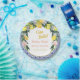 This enchanting,beautiful and lemon fresh bridal shower party plates design features a vibrant watercolor Italian citrus lemons and pink roses, complimented by intricate Mediterranean Italian blue tiles pattern with script "Ciao Bella" gold and pink lettering calligraphy. This design promise to bring the allure of Mediterranean charm to your bridal shower party. Easily customisable and editable text.
