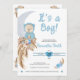 Blue It's A Boy Boho Bear Moon Baby Shower Invitation