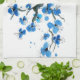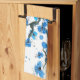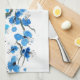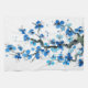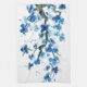 a traditional watercolor flower artwork depicting blue blossoms on a tree as decorative kitchen towel