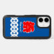 This cool phone case is designed with a classic blue happi coat pattern. The Japanese kanji character "matsuri," which means "festival," appears in red with a white outline, and an interlocking chain pattern appears in white along the bottom. In between is a space to add your own name, if you'd like to personalize your phone case!