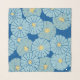 A pretty botanical block print of blue and yellow flowers created from a vintage Japanese painting.