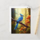 A postcard featuring the art of a beautiful blue jay bird sitting on a wooden branch in an old forest. Check out the menu below to see this art on a range of other cool Zazzle products.