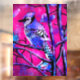 Blue Jay Bird on Tree Branch Pink Abstract Art Window Cling