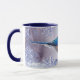 This pretty mug features my original photograph of a beautiful blue jay bird, sitting on a snowy fence, processed in an illustrated and whimsical technique with graphic art snowflakes for an artsy style. The handle and inside of the cup are a blue tone to complement the artwork.