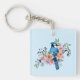 Blue Jay Bird Spring Flowers Nature Illustration Keychain