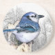 A handsome blue jay perches against a wintry backdrop. Personalize with your own text.