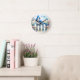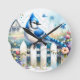 Blue Jay Cottage Garden Fence Scene Round Clock