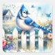 Blue Jay Cottage Garden Fence Scene Square Sticker