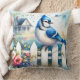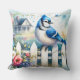 Blue Jay Cottage Garden Fence Scene Throw Pillow
