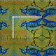 A kaleidoscope of blue jays on a bright sky makes a boldly colorful fabric.