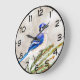 Blue jay in a pine tree with snow large clock
