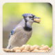 A blue jay with a peanut in his beak, sitting behind a pile of peanuts. This image was taken in Ticonderoga, NY (the Adirondacks) by Debbie Quick of Debs Creative Images. To see more photography by Debbie, check out her website at: www.debscreativeimages.com