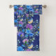 A Colorful Bathroom Towel Set In Blues and Violets. Cheerful Blue Jays In Spring