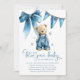 Set the scene for a joyful celebration with these blue jean baby themed baby shower invitations. Featuring an adorable bear in denim dungarees, a sweet denim bow, and playful blue stars scattered across a modern invitation template, they're perfect for honoring the parents to be.
