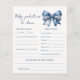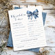 Celebrate the arrival of a little one with our charming Blue Jean Denim Bow Theme Baby Shower predictions and advice sheets! They are the perfect way to set the tone for a blue jean-themed baby shower, featuring a delightful denim coquette bow on a soft white background.