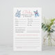 Create a keepsake the parents will cherish with this Baby Predictions and Advice card. Designed with a watercolor clothesline featuring denim and pink baby clothes, this card invites guests to guess baby details and share heartfelt advice. A sentimental activity that fits beautifully into your rustic denim baby shower décor.