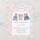 Celebrate the arrival of your little angel with this charming watercolor. Beautiful baby clothes hang delicately on a clothesline, framed by a soft, dusty rose border and a scalloped arch. This elegant and poetic illustration will add a touch of sweetness and style to your baby shower invitation.
