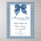 Blue Jean Gingham Coquette Bow Baby Shower Welcome Poster