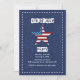 A stylish, denim invitation with white border stitches. It features a big start with the American flag pattern. This patriotic invitation is great for any national holiday, soldier's welcome home party, military retirement and more.