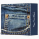 A great all purpose binder, with a photo of a jean pocket, with a note page sticking out. Customize with your text to personalize this great binder for school, home, or office.