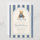 This cute boy baby shower invitation, featuring a teddy bear wearing blue jean dungarees, can be personalized with all your special baby shower details, and special photo and QR code on the reverse. Designed by Thisisnotme©