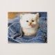 Game puzzle shown with a photo print of a cute kitten in the blue jeans pocket. Customize this item or buy as is. Stock Image