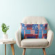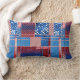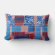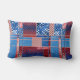 Pillow featuring a modern abstract quilt or patchwork pattern design in red white and blue with jeans. The pattern can also be rotated or scaled.