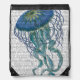 Blue Jellyfish 1 by Fab Funky. Features a beautiful blue floating jellyfish with a book page for a background.|191847D