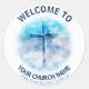 Blue Jesus Cross Church Welcome Classic Round Sticker